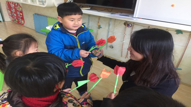 近日在三八妇女节来临的之际,丽华第二幼儿园中班的小朋友用不同的方式表达对家人的爱意,她们用灵巧的小手制作美丽的花朵,虽然只是小小的一枝花、一个小小的拥抱,但却表达对妈妈那份珍贵而割舍不了的情谊。有一种爱,浪漫温馨;有一种美,青春洋溢;孩子们却以一颗赤诚的心爱着妈妈,祝她们像这郁金香一样美丽常开。