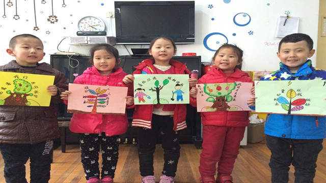 在植树节前期,孩子已经观察幼儿园的各种树木、花草的生长情况。这次他们开展的活动是请每个幼儿自己动手动脑完成一幅爱护树木的设计。护绿牌的画面中表现了 “保护树木人人有责”“有了树木,校园才会更美”“爱护环境从我做起”“美化环境,植树造林”等。