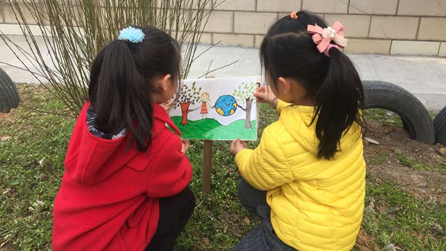 孩子们制作了“心愿卡”。稚嫩的小手在彩纸上画出了自己最美的愿望。让小小的卡片插上翅膀带着孩子们的希望飞向远方。孩子们兴高采烈地来到院子里,把包含着美好愿望的卡片挂在小树上,提醒大家要爱护小树苗。别看是幼儿园的孩子,但是他们个个都听得聚精会神,都嚷嚷着也想要加入植树的行列,为装扮地球做贡献。孩子们还制作了环保小标牌,一幅幅作品生动形象的宣传了“爱护环境,从我做起”的理念。