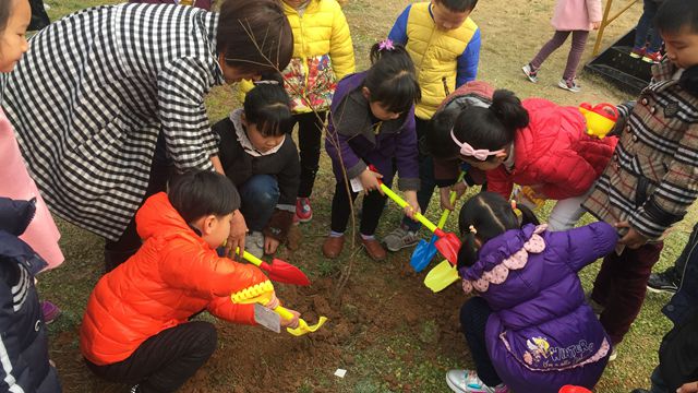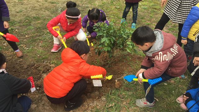 小班孩子们在老师的带领下,与幼儿园里的小树合影,和小树比比高。中班的孩子轻轻蹲在小树苗身旁,给小树苗喝水,对小树苗说“小树苗,你慢慢喝”“小树苗,你一定要快点长大!”充满爱心的行动和童稚的语言表达了他们对树木的爱护和祝福。大班的孩子用锄头、铲子挖坑,一起种上一棵棵希望之树。孩子们的脸上洋溢着满满的笑容和快乐!