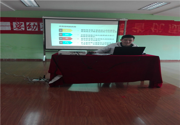 为进一步提高教师的业务素质和教育教学能力,促进教师专业化成长,转变教育观念,深化课程游戏化改革,近日,娑幼召集全园老师进行专题培训。赵翔老师首先围绕当前学前教育的改革热点——体育区域游戏化建设,他从体育游戏化建设的背景、实质、游戏精神以及区域体育的组织、实施、幼儿各年龄段体育活动目标多个方面对课程游戏化进行了详实、生动的解读,为幼儿区域体育游戏化建设指明了方向。