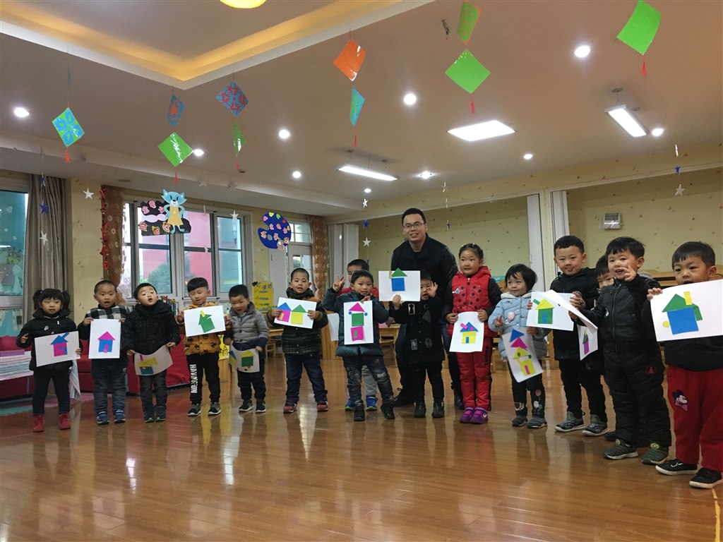 瞧!金龟子小三班的小朋友和老师一起迎来了翁煊桐的爸爸。这位从事建筑设计的家长,为了能让孩子们的活动过得更有意义,收获更大,花费了很多的心思。从选择主题,制作展板,到准备相应的图形材料,一应俱全。特别是他绘声绘色地描述高楼大厦的造型结构,把一群小不点儿都吸引住啦,让人以为是专业的幼儿教师呢,真厉害!在幼儿进行自主操作时,有的拼了三角形的房顶,有的拼了梯形的房顶,有的拼了长方形有房顶……有一个窗子的,有两个的窗子的;有烟囱的,有小道的……各式各样的房子呈现在你眼前。孩子们都好像是一个个建筑设计师一样,造出了各式各样的房子,幼儿的想像力、创造力得到了充分的发挥。