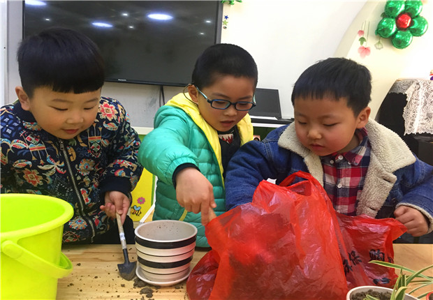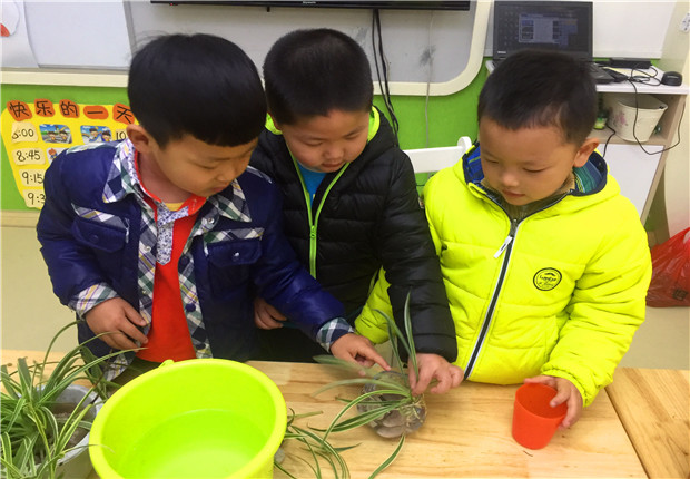 春天的脚步早已缓缓踏来,植物角里的小生命又重新焕发了生机。“老师,吊兰的根都长到外面了”,一早就有小朋友发现了吊兰的秘密,原来吊兰长大了不仅会开花,还有长出有根须的新吊兰,顺着小朋友们的提问,老师连忙追问道:“把根须重新种下去你觉得会活吗?”小朋友们七嘴八舌地议论起来,为了探寻答案,于是开始了种植吊兰的小实验。