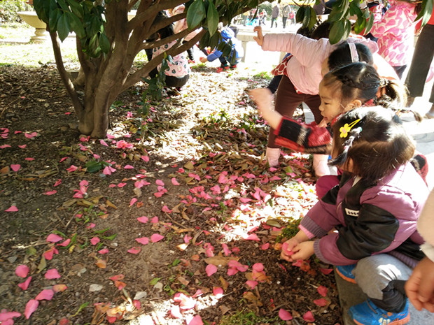 大自然是是孩子们最博大精深的老师,自然界中蕴含的信息是丰富且生动的。怡康社区里充满了春天的气息,一踏进社区,孩子们纷纷议论起来“大家快来看,小草发芽啦”“哇,我发现梅花啦。”循声望去,一株株红梅跃入了大家的视野。