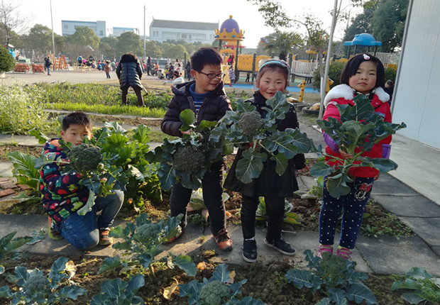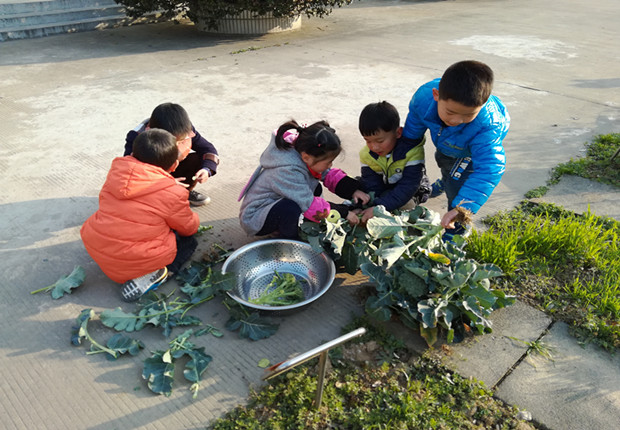 西兰花是孩子们去年秋播的蔬菜,是直接买来菜苗种下的。每天孩子们兴奋的去观察西兰花有没有长大,兴冲冲地帮植物浇水、拔草。几个月过去了,我们的西兰花还是没太大变化,根本看不到西兰花长大结球的模样。天气渐冷,谁知西兰花倒是不畏严寒,一个寒假过来,西兰花都安然无恙,而且更让我们高兴的是,它们的茎上都顶起了或大或小的绿色花球,有几颗竟可以摘下来吃了。于是孩子们一起去收获西兰花,并让厨房的阿姨做成香喷喷的菜让我们尝一尝。