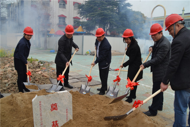 天宁区茶山中心幼儿园南教学楼校安改造工程开工奠基典礼于近日举行。茶山街道办事处党工委副书记王松涛、副主任袁维鸿,区教育文体局副局长薛文兴等出席仪式。