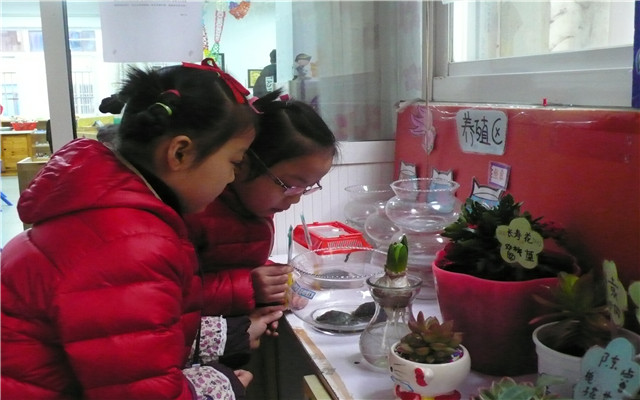 从那天起,孩子们每天来园时、课间休息时、餐后休息时,都会涌入自然角中,观察自己的小动物、小植物。细心照顾着它们,定时给它们换水、浇水、喂食、带它们晒太阳……班级的自然角成为大家进一步发现春天秘密的好场所。在养护中,孩子们感受到动植物生命的存在,体验它们生长变化的欣喜,进一步领略春季万物蓬勃生长的奇妙。