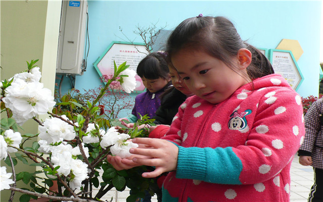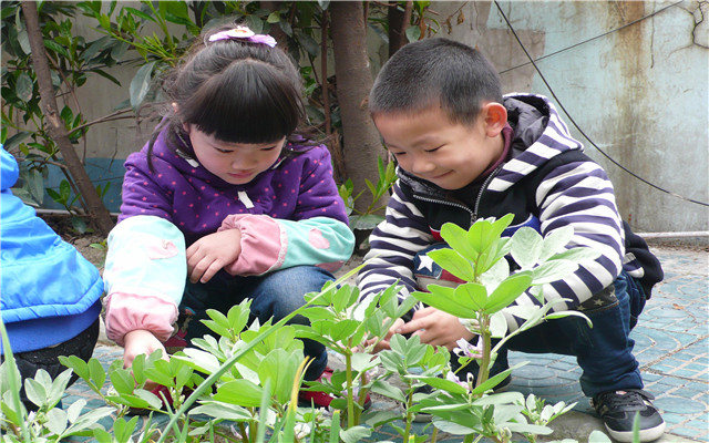 首先,根据各年级孩子的年龄特点,师幼共同制定寻找春天的计划,开展在大自然中寻找春天的活动。在教师的引导下每个孩子运用自己的感官去看看、说说、听听、闻闻、摸摸——寻找身边美丽的春天。孩子们发现:幼儿园的小树吐露新芽,鲜花绽开了笑脸,种植园的小苗也从泥土里钻了出来,有的在一场春雨之后长势喜人……在用眼睛、用手、用口、用心灵和春天对话的同时,孩子们每天都能发现春天新的讯息。
