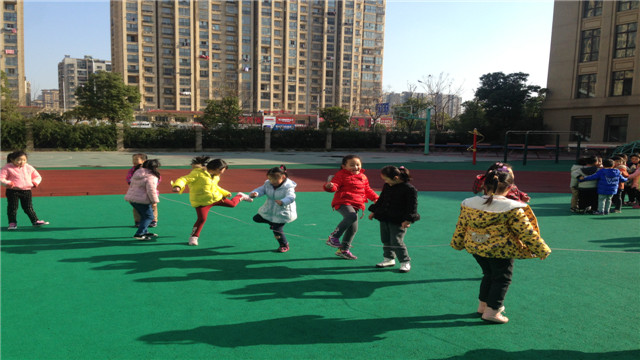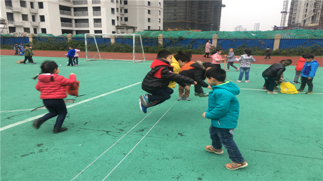好游戏是应该传承的。一根3米左右的橡皮筋,可分为单人跳和集体跳两种。它以跳跃为主,穿插着点、迈、勾、挑、跨、碰、压、踢、绊、搅、绕、盘、踩、掏、摆、顶、转等十几种基本动作,同时以各种技巧动作编排成组合动作,配合歌谣,跳出各种花式图案。今天,我们老师带着孩子一起跳起了皮筋,看,他们一边跳着,一边唱着,玩得是欢呼雀跃,很是热闹。