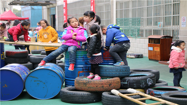 第二天上午,雕幼总园打破固定格局,因园设计,空间巧利用,资源多挖掘。结合《指南》精神和幼儿发展需求,在原有基础上,打造“一园、一廊、一馆、多区角”的户外环境。由指向性区域逐渐转变为功能性挑战场,形成了曲尽通幽、错落有致,开放有序“生态、自然、原色”的多元游戏场,满足了幼儿自主玩各种游戏(运动、建构、角色扮演、启智、涂鸦等)的需求,扩充了孩子户外活动的快乐空间,让环境活起来。