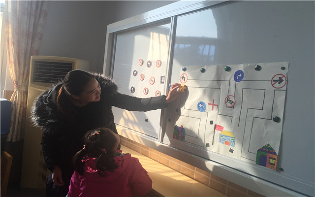 你瞧,中四班颜子淳妈妈就自告奋勇担任“交通规则”宣讲员,给孩子上了一堂趣味盎然的交通安全课。只见颜妈妈把交通安全标记融入有趣的游戏中,引导孩子们边看、边玩、玩想、边记,从中熟悉每种安全标记的警示意义,做个遵守交通规则,文明有礼的好宝宝。
