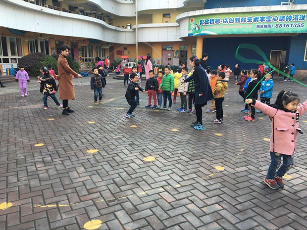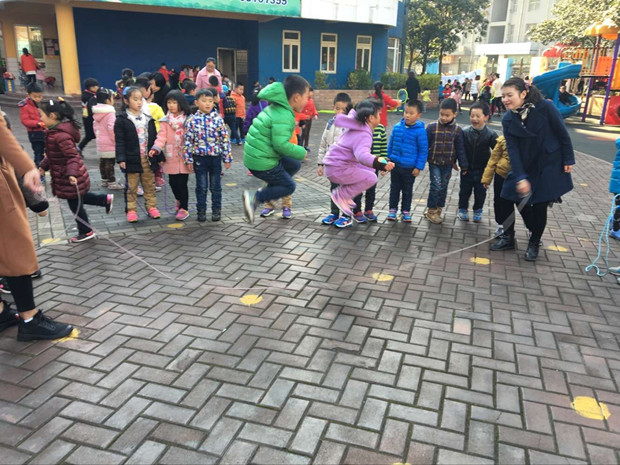跳绳是小学体育考核之一,大班的孩子学会跳绳就尤为重要了,幼儿园教师因此也有了一个艰巨的任务,那就是帮助幼儿学会跳绳,在我园跳绳是我们大班每一位幼儿都需要掌握的技能。
