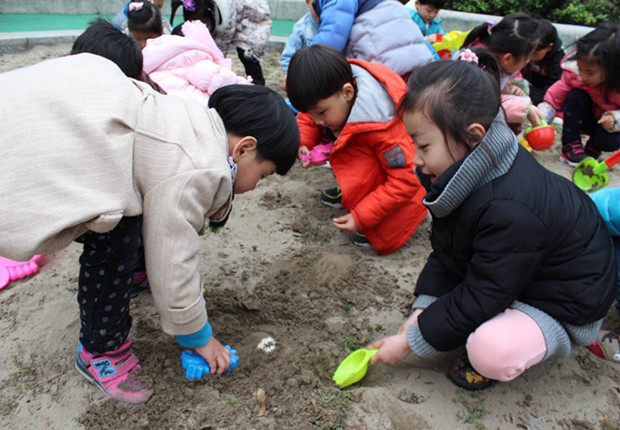 孩子们在与沙的亲密接触中,可以获得相关的直接经验,如学会区别干湿、冷热、粗细、多少、深浅等不同的概念。不仅发展了创造力和想象力以及手部肌肉和触觉、视觉机能等,同时也增加对环境的理解,促进自我和谐的成长。