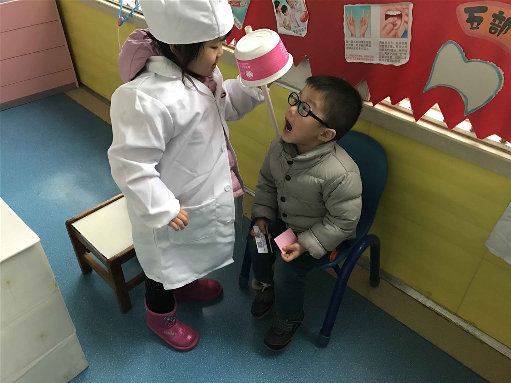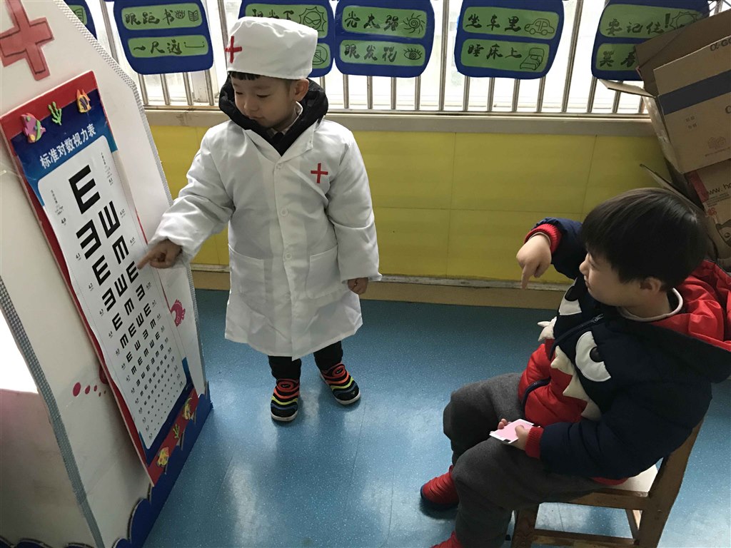 开学初,我们给孩子们开设了“娃娃医院”游戏,每到游戏时间,总能看到孩子们开心的笑脸,个个都很兴奋。在听老师介绍医院的一些情况时,都听得很认真,都想来试一试当医生,就连来医院看病的人也很多,都要排上一会儿队才能看上病,“娃娃医院”好热闹!瞧,挂号处,口腔科,眼科,输液室,药房,每一个角色孩子们玩得都很投入哦,小医院让许多的小朋友们都圆了一个医生梦,也让许多的小朋友们了解到了医生这个职业的工作,减轻了他们对于医生、护士这个职业的惧怕。