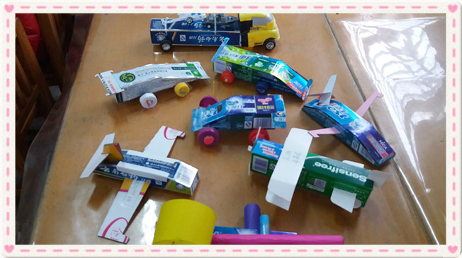 孩子们在家长的帮助下,一会用剪刀,一会粘胶布,“小帮手”做得眼勤手快,有的利用彩笔进行绘画;有的利用彩条纸、毛根、花布等材料进行粘贴;还有的利用瓶盖进行装饰。整个活动气氛活跃、温馨,其乐融融。一会功夫一辆辆汽车就呈现出来了,有酷炫的赛车、有可爱的动物车,还有庞大的公共汽车和卡车等。最后,在大家的投票,选出了褚劭、李晨曦、金龙等小朋友的作品为本次活动的优秀作品。