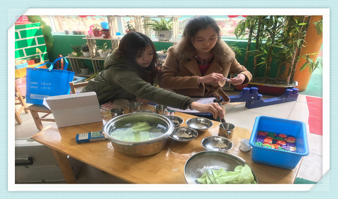 本着“孩子的安全高于一切”的信念,茶山中心幼儿园保健医生陪同检测小组行走在幼儿园的每个班级,仔细检查幼儿园的大大小小的角落,还检查了每一位老师的手、玩具、毛巾、水杯等,确保每一位幼儿在园卫生的安全。检测小组现场询问了班级教师平时的消毒情况,并对幼儿园室内外环境的消毒方法做了详细的讲解,检测小组强调,春季是幼儿流行病发病高峰,一定要做到一人一巾一杯,杯子消毒要彻底,要做好晨检和午检工作,对有病请假的幼儿要密切关注,跟踪到位,一定要做到早发现、早预防、早就医,避免出现群体性发病事件,他们表示:茶山中心幼儿园空气检测整体情况较好,现场检测结果完全符合规定的标准,并对茶山中心幼儿园的卫生保健工作进行了高度评价。