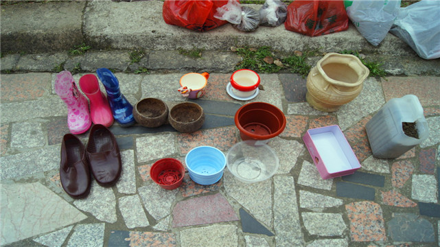 在种植区里,老师和孩子们利用旧雨靴、旧皮鞋、糖果盒、塑料壶、陶瓷罐等,在里面放上土或水,种植上太阳花、郁金香、含羞草、桂圆、榴莲、苹果、梨子、芋头、菠萝、土豆等植物。在观赏区里,老师和孩子们精心种植并收集各类花卉草木,花儿争奇斗艳,草儿绿意浓浓。各个区的每种植物均配有各种文字标记和相关知识介绍,有的班还设计布置了种子发芽情况分析表、各种观察记录表及地膜实验等,充分体现了自然角植物的丰富性、养殖方式的多样性、容器利用的创意性、环境创设的艺术性和幼儿探索的科学性,自然角俨然成了充满生机和创造力的生态园。在老师的引导下,孩子们每天在这里进行浇水松土、交流分享、观测记录,掌握植物的生长变化过程。通过种植活动,不仅使孩子们学到许多有关植物的科学知识,掌握其简单的种植技能,还让孩子们亲身体验劳动的快乐,培养了孩子们关心热爱生活和大自然的情感。
