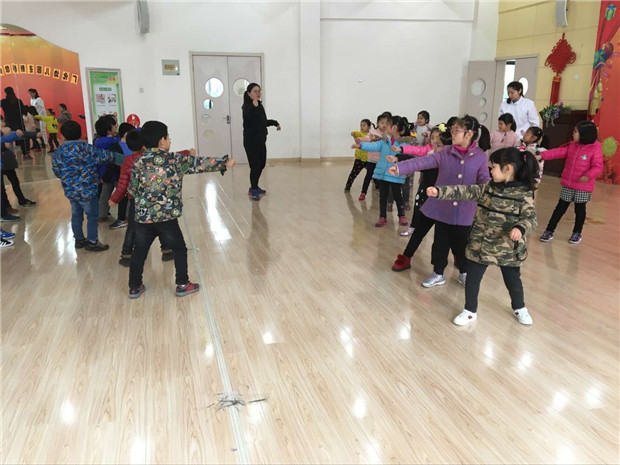 活动开始,全副武装的教练首先表演击剑,那向前向后、稳而不乱的进攻步法,手中的剑却时刻指向对手,伺机发起进攻,正如在剑道上舞动的芭蕾。小朋友们好奇的盯着每个动作,还不时的提问:“教练,这个面具能保护我们吗?”“教练,这个是不是剑,它会不会戳到我们,我有点害怕呢!”……