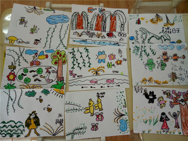 他们为美丽的春天添上繁花,瞧~孩子们用他们充满童趣与想象的小棉签,点出了奇妙而又生动的“春天故事”。在孩子们的精心设计下,教师的引导下,或颜色丰富,或创意十足,或充满童趣,充分展示了我班幼儿扎实的艺术功底。柳树下的嬉戏,小燕子可爱的表情,会“说话”的小蝴蝶,都成了孩子们画笔下表现的对象。