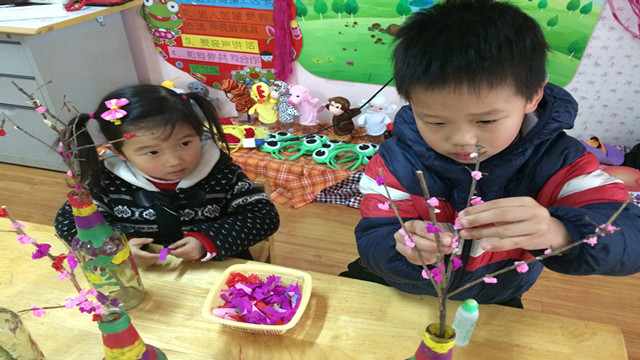 春天悄然而至,花草树木开始复苏,孩子们内心充满着好奇感,为了引导幼儿感受春天的气息,同时提高幼儿的动手操作能力,特开展了这次手工活动——美丽的桃花。