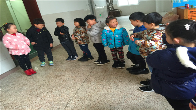 很快他们就掌握了穿大鞋的奥秘:尽量把小脚伸向大鞋的前端,走的时候用脚尖勾住就不容易掉了。等他们基本掌握走路的要领后,我们就开始跟着音乐模仿动物走路,学着小鸭一摇一摆,学着袋鼠妈妈蹦蹦跳跳,学着小鱼小碎步跑。