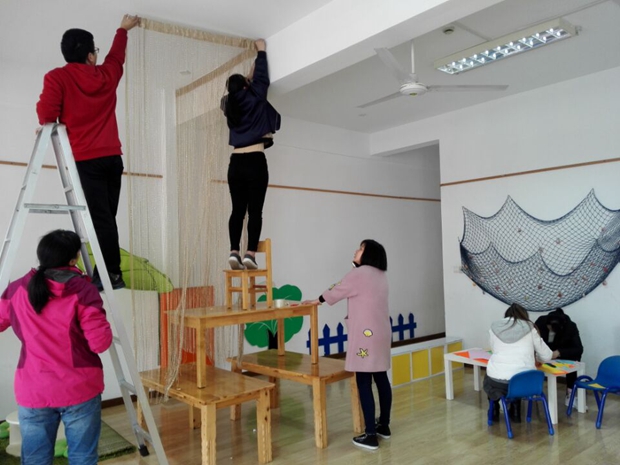 幼儿是区域活动的主体,他们在自由自主地与环境互动的过程中,建构自己的知识、技能、情感等。马燕老师、戎丽娜老师、喻丽文老师作为我园的巧手教师,在创意美术方面有着独特的见解,近日,以她们为主的“环创策划团”也在为我园大环境出谋划策,她们将带领我园其他教师重新改造幼儿园的公共区域,打破班级和年级间的界限,拓宽原有的活动空间,让幼儿更加自由,更加自主,从而打造多元、童趣、和谐的幼儿园环境。