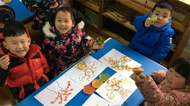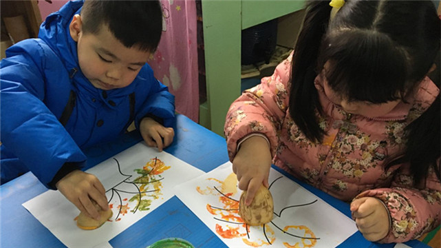 孩子们在制作中不仅体验到了印画的快乐,更加深了对蔬菜的认识和了解,明白了蔬菜不仅能让我们身体更健康,还能变成为我们手中的宝贝,让孩子们在生活中体会到更多的绚丽多彩。最重要的是,这样一个令人愉悦、主动学习的过程,让孩子们变得更大胆、更自信了。