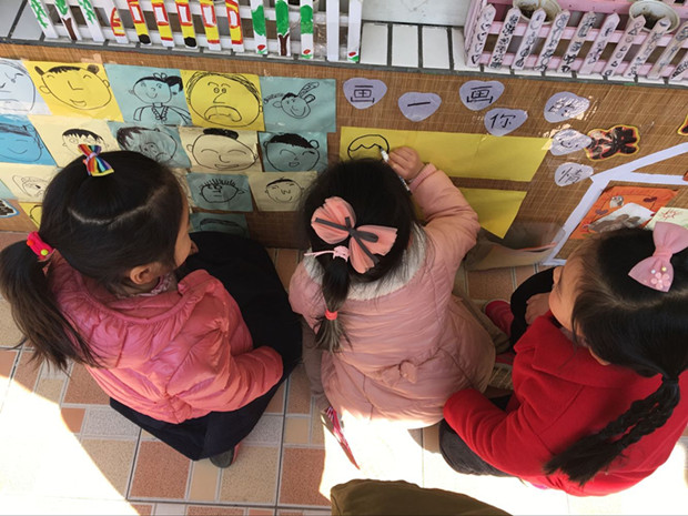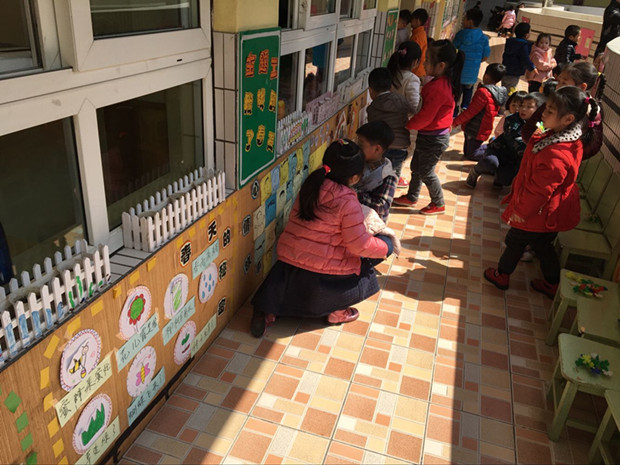 我园不仅活动室里的各种环境是幼儿动手装饰布置的,就连我们的走廊环境也是幼儿动手操作装饰的哦!每一次开始新的主题的时候,老师们都会和幼儿商量如何设计主题墙。所以,他们亲自设计如何让走廊的墙面更好看,他们动手画出好看的图片,和老师一起把他们的作品贴出来。因为他们想让自己的爸爸妈妈以及其他家人都能看到自己的作品,所以他们每一次装饰的时候都很认真。