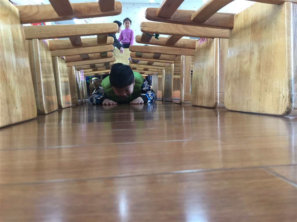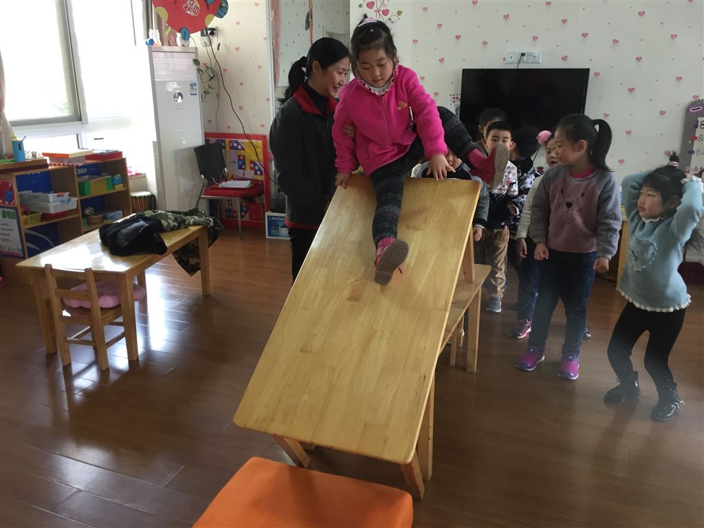 体育活动一直是孩子最喜欢的游戏活动,因为它不受场地、空间的限制。这不,春寒料峭,初春的天气经常让孩子们“望外兴叹”。瞧!香缇湾大风车幼儿园大班的老师们有绝招,在教室里利用桌椅板凳,在楼梯上利用硬纸板也能给孩子们一个大胆地探索、参与的游戏。