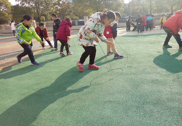 跳皮筋,滚铁环,跳方格……这些民间游戏你还记得吗?它们曾经陪伴许多人度过了难忘的童年时光。但随着现代高科技玩具的不断冲击,这些游戏,便静静地淡出了孩子们的生活。为了让孩子们感受经典老游戏的乐趣,我园将民间体育游戏渗透在了每日的户外活动中,以培养幼儿健全的品格、健康的体魄。