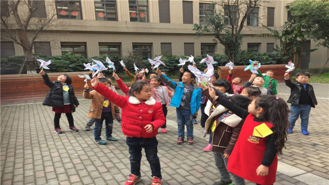 风车是我们民间的传统玩具,它借助风力不停的旋转,以它独有的造型、独到的玩法,易制好玩,深受孩子们的喜爱。本周的清幼大班的孩子们玩着自己亲手制作的风车,激动的心情无以言表。