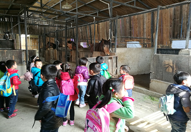 一进入青田马会,小朋友们抑制不住心中的激动,发出了一阵阵的感叹!“哇!你看这里的风景真是太美啦!”“我刚才看到马了,好高大啊!要是能骑一下就太棒了!”