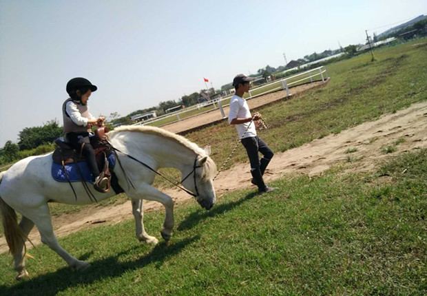小朋友跟着管理员叔叔来到了马厩,参观马儿生活的环境,还了解了一些马儿生活的习性。还有幸参与到了喂马的行列中,在给马儿喂食前,管理员叔叔还特意给小朋友提出了要注意的地方:把食物放手上一定要打开手掌,不然马儿吃食物时会啃伤到手。接着我们来到了练马场,骑马之前,管理员叔叔讲解了初学骑马的注意事项。“不要站在马的前方和后方,以防被踢”“马的屁股不能乱拍”“马的听觉很灵敏,所以不要大声叫喊,以免马受惊”……孩子们听得可仔细了。不少小朋友在管理员叔叔的帮助和保护下,骑上了马。看!脚掌踩蹬,上身直立,膝盖和大腿内侧夹马,孩子们立马找到了小骑士的感觉。很多孩子都是第一次骑马,有的紧张,有的则兴奋得不停更换POSE摆拍……各种可爱表情和小动作,萌翻了在场的所有人。
