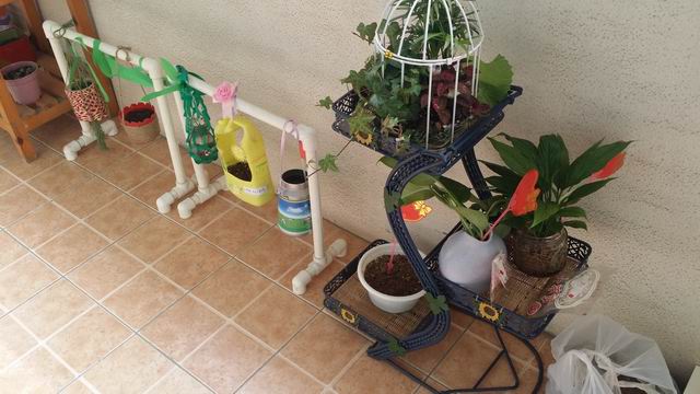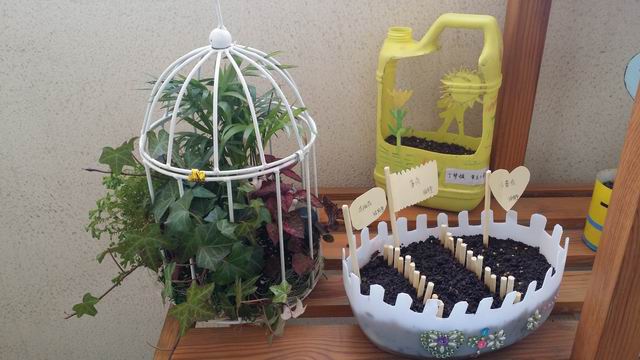 班级里家长和孩子们带来各种花草,以及各类植物的种子,在老师的指导下播种,秉着丰富性、探索性、参与性的特点,进行自然角的布置。同时,凸显孩子们观察动植物变化过程以及参与管理自然角等的多种内容形式。