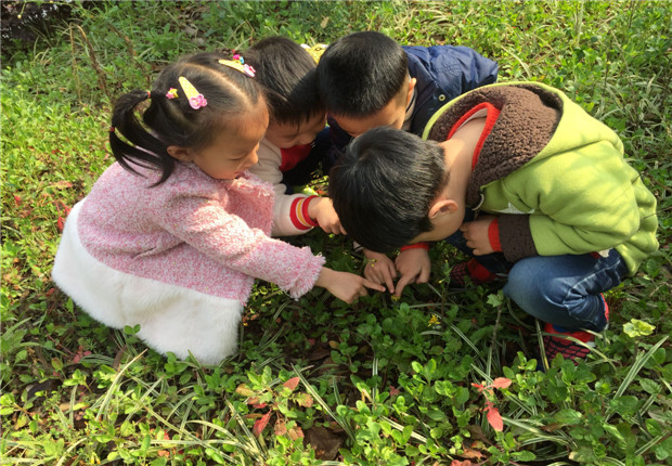 春天来了,幼儿们开始了寻找春天的活动。“小草从泥土里冒出来了。”“老师,老师,我看到小草了,我找到春天了。”孩子们在草地、在树旁,在花坛边,在阳光下,感受着春的气息。