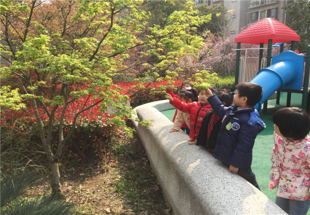 孩子们在幼儿园里自由结伴,自由寻找、在交流中了解春天的相关知识,更加激发了他们寻找春天,感受大自然美的愿望。幼儿们有的在寻找蒲公英,想和小伞做游戏;感受油菜花的芬芳。有的在树叶旁摸摸、看看,感受着新长出的树叶的不同,他们像一群放飞的小鸟,自由的遨翔在春的怀抱里。花红柳绿,万物复苏的季节,是孩子们感受春的温暖、领略春的魅力,走进自然的大好时光。