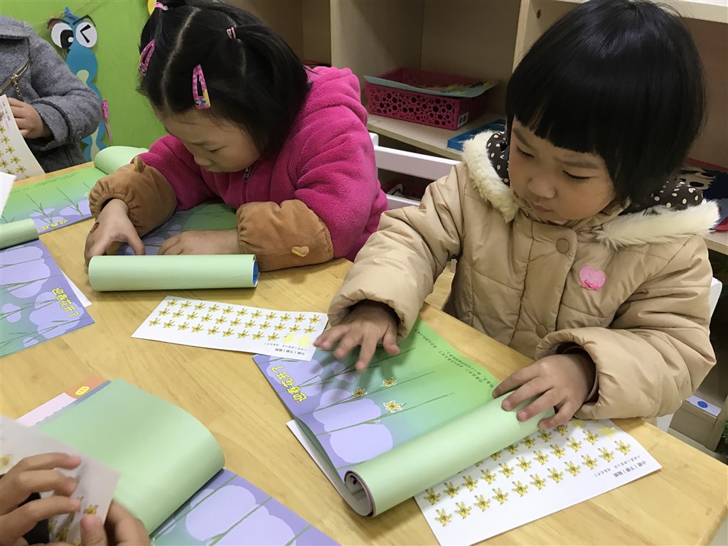 小朋友们都越来越聪明了,一张张小贴纸将花朵粘上树梢,仿佛都能感受到那些迎风飘扬的枝条了!让孩子们接触大自然,能学到很多知识,领略春天的美景和温暖。不仅仅在课堂上,我们也要多带孩子们出去走走噢!(李青秋)