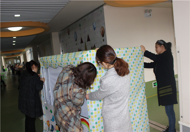 经过开学一阶段的游戏后,孩子们显然已不能满足于开学初创设的游戏场景、内容、材料。为能给幼儿提供一个充满童趣、寓教于乐的游戏空间,发挥环境的隐性教育作用,丽华三幼的老师们利用中午时间,对公共区游戏环境创设进行了一番调整。