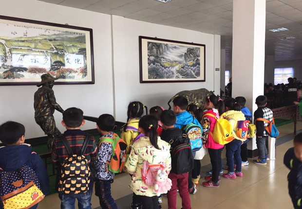 小朋友们出发啦!小手拉小手,一起往前走,走过了马路、走过了小区,终于到了牟家农博馆。馆中藏着1000余件旧农具,分别是生产工具和生活工具两大类,每一件都沉淀着近百年来的农具发展史,讲述着江南农民的农耕故事文化。他们这里看看,那里摸摸,可开心啦!第一次看到这样稀奇古怪的玩意,不禁问起来:“老师,这是什么?有什么用啊?”老师耐心地向他们介绍每一件农具的用途,慢慢地,从稻田播种开始,到施肥灭虫、再到收割晒谷,种田各个过程的农具,小朋友们都熟悉起来了,从而了解了出生前人们的艰苦生活,也感受到了“粒粒皆辛苦”的道理。