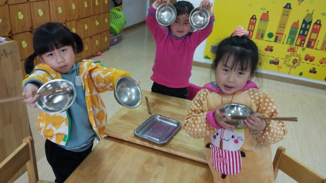 老师吃完后,先向小朋友们亮一下碗:“小朋友们,看老师吃得干净吗?”孩子们回答:“干净!”“看哪个小朋友像老师一样,吃得干干净净,一粒饭都没有,能做到的就把你的碗亮给老师看一下。”孩子们吃完后,都自觉的亮一下碗,证明自己吃得干净了。