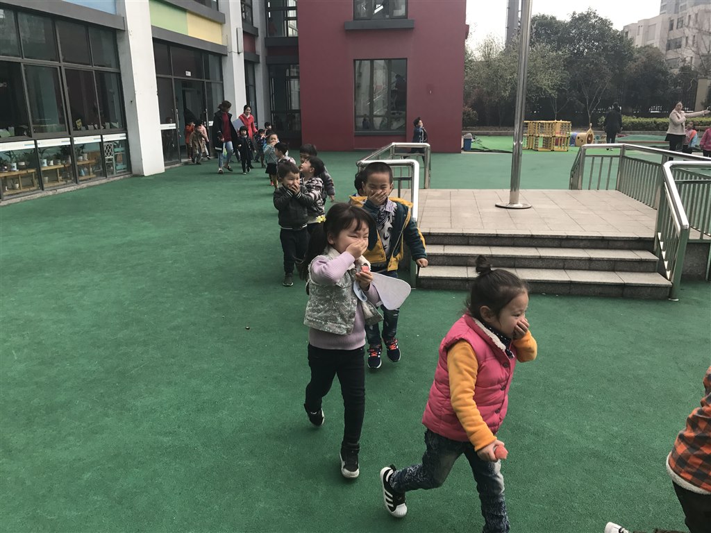 上午10点03分,消防警铃便传遍全园,听到警报后全园教职工立即停下手中的工作,各班教师迅速按紧急预案的疏散线路带领幼儿拿起湿毛巾,捂住口鼻,弯腰小步快走,分三道楼梯迅速且有序下楼。途中,孩子们冷静且井然有序,每层的疏散指导员认真负责,快速的再次检查各楼层班级是否有遗留幼儿。很快孩子们集中到操场安全地带,教师迅速地清点人数,并向总指挥报告。整个疏散活动只用了2分05秒,达到了我们预期的目标。