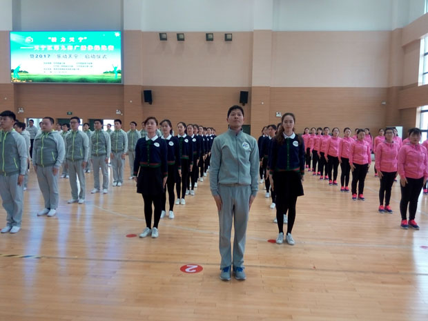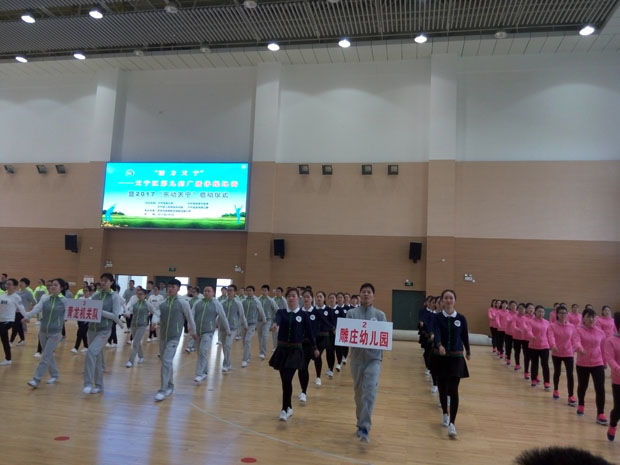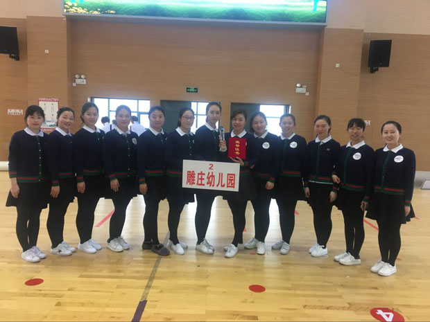 4月8日下午,由雕幼21位富有青春气息的年青教师组成的代表队,参加了由天宁区总工会、天宁区教育文体局、天宁区人民政府办公室等举办“活力天宁第九套广播体操比赛暨2017乐动天宁已启动”。全区共有32支代表队,约600名参赛选手参加本次大赛的角逐。这次比赛体现了力与美的结合,可谓强手云集,竞争激烈,不失为一场视觉盛宴。经过激烈的角逐,雕幼的参赛选手以规范整齐的动作和团结协作的精神赢到了评委们和现场观众的一致好评,摘取本次大赛二等奖。