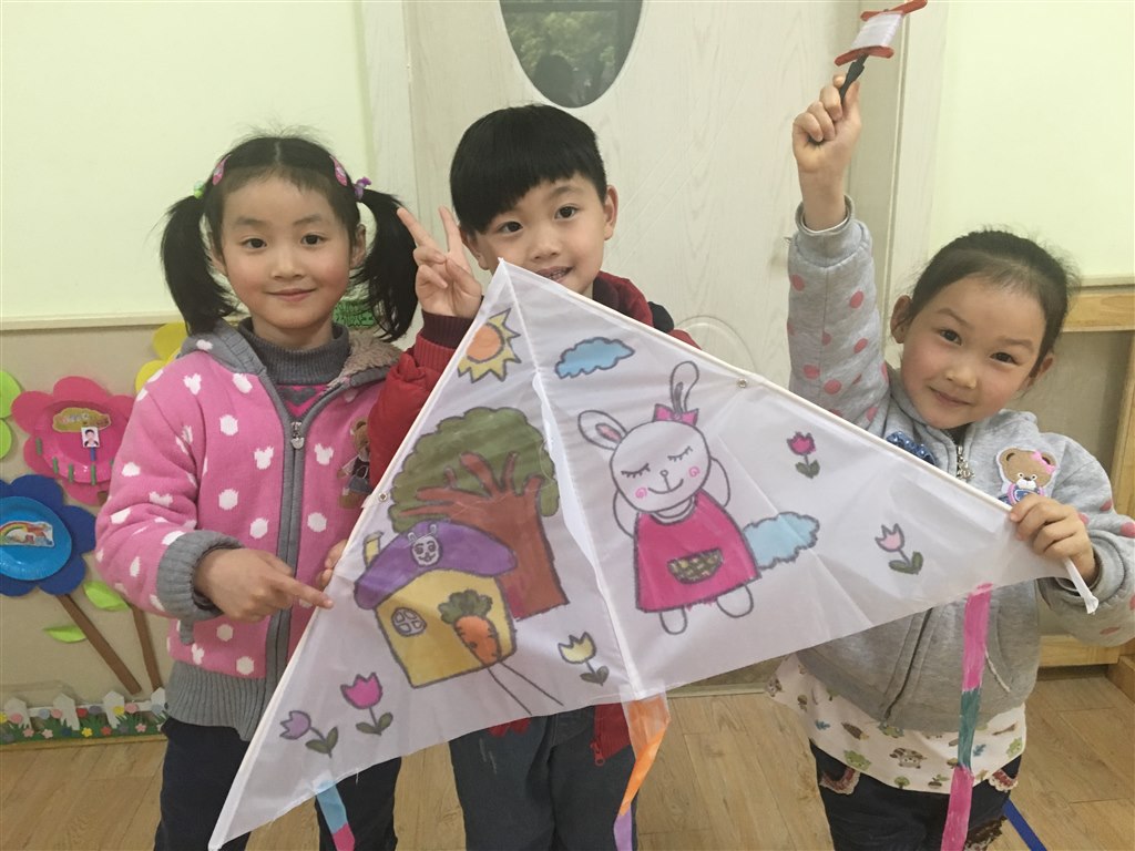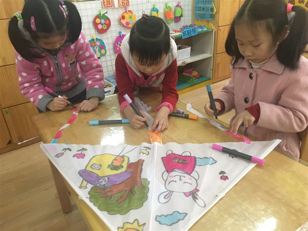 小朋友在实践操作中明白轻的风筝能飞得高,重的风筝则飞不起来的道理,初步了解风筝飞上天的原理,同时也培养了幼儿废物利用的意识及团结协作的精神。