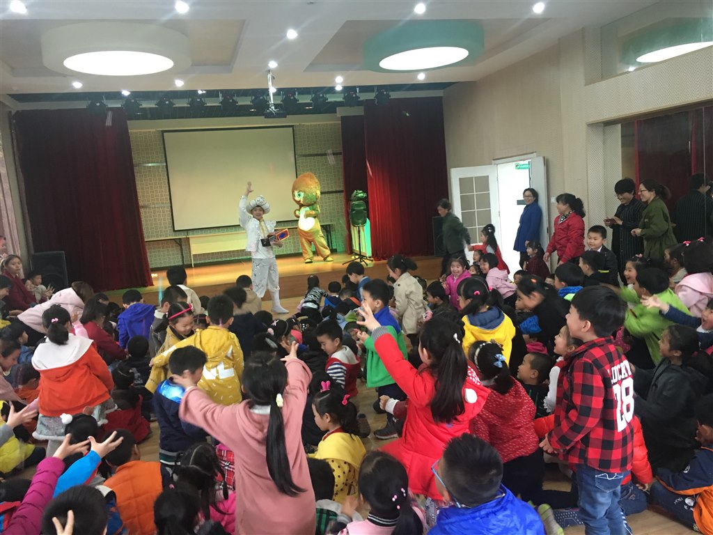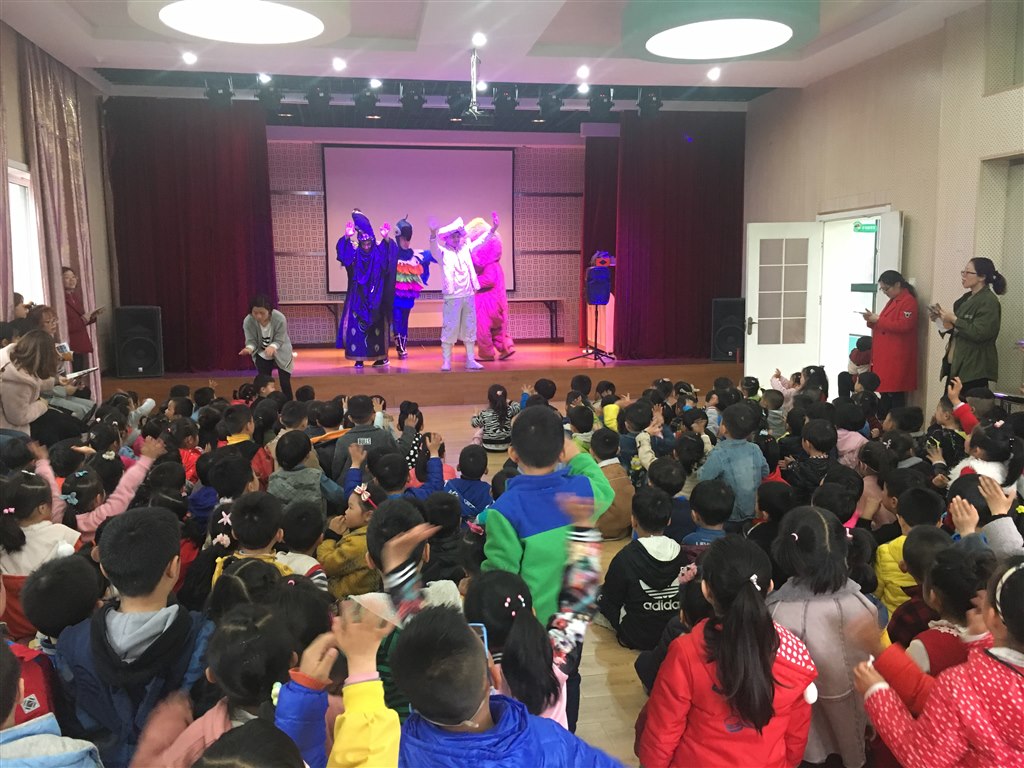 每学期幼儿园都会邀请童话剧团进校园,旨在让经典的童话故事能真正伴随孩子们成长,能在孩子们成长的过程中开启智慧的大门,通过感官体验,感受积极、健康、向上的美好情感,形成善良、友好、勇敢等优良品质。