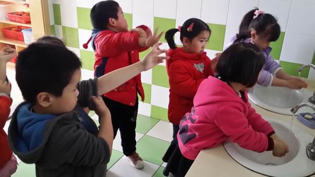 在探讨活动中,请孩子们说一说自己洗手时遇到的困难,教师再将洗手时的视频播放给大家观看,让幼儿自由讨论:洗手之前应该做什么?怎么做?孩子们都知道要把袖子卷起来,于是,教师先做示范,然后让每个孩子都自己试一试,如果自己的袖子不方便,可以请其他伙伴帮忙,活动中每个孩子都愿意自己卷袖子,卷不起来的也都相互帮助。经过这次活动,教师发现孩子们在盥洗环节时,卷衣袖的主动性明显有了提高,在洗手时都会主动尝试去卷一卷自己的袖子。