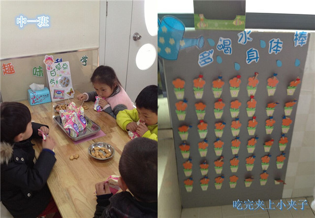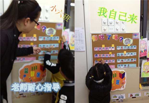 小班的宝宝们在老师的引导下为吃过早点的自己做上标记,中班的孩子学着自己为自己添加记录标识,而大班的孩子则会在老师的指导下生成合理的大家都能接受的生活活动规则提示并自觉遵守,这一举措对培养他们自觉执行规则,并逐渐内化为一种习惯会起到很大的作用。