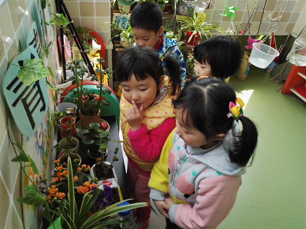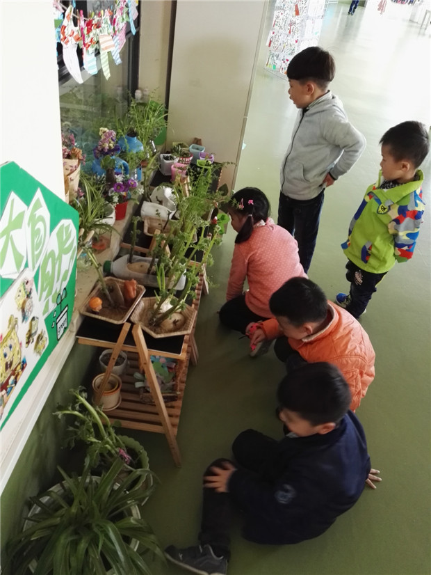 “我妈妈说了,现在就是春天了” ,“啊?那春天在哪里呀?”——于是,小班孩子在幼儿园里“寻找春天”的活动就这样开始了……一双双充满了好奇的眼睛不停地去寻找、去探索、去感受,“老师,这里有迎春花!”、“老师,哥哥姐姐的萝卜长了好高的叶子!”、“哇!小动物真可爱!”、“快来快来!这里还有小蝌蚪!”孩子们欢呼、跳跃,感受着春天的气息,分享着找到春天的快乐,一张张可爱笑脸与美好的春光相映成趣,美不胜收。