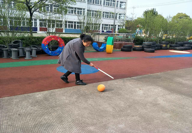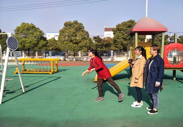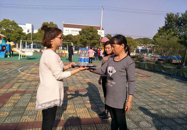河幼全体教职员工利用课余时间进行分组练习,以最快的速度掌握练习各项目的技能、技巧。看,有的手托托盘,正在练习将托盘中的3瓶水送至下一位队员手中;有的手持体操棒,练习赶“小猪”,有的老师赶起“小猪”得心应手,而有的人的“小猪”似乎不太听话,到处乱跑;还有的玩起了春播秋收、飞镖等运动项目。