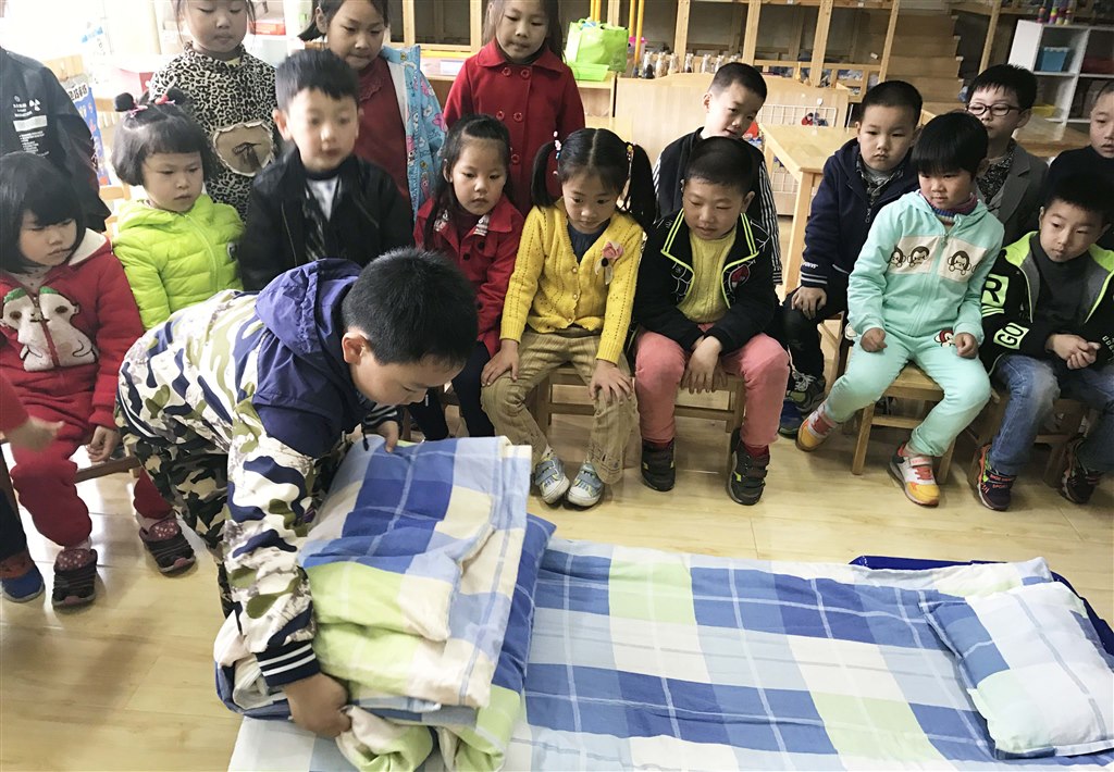 为了巩固幼儿的自我服务意识,提高孩子的生活自理能力,2017年4月17日,丽华第二幼儿园大二班举行了一次别开生面的叠被子比赛。