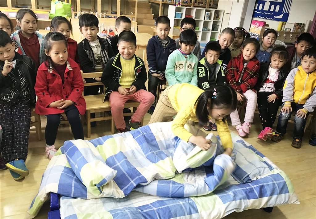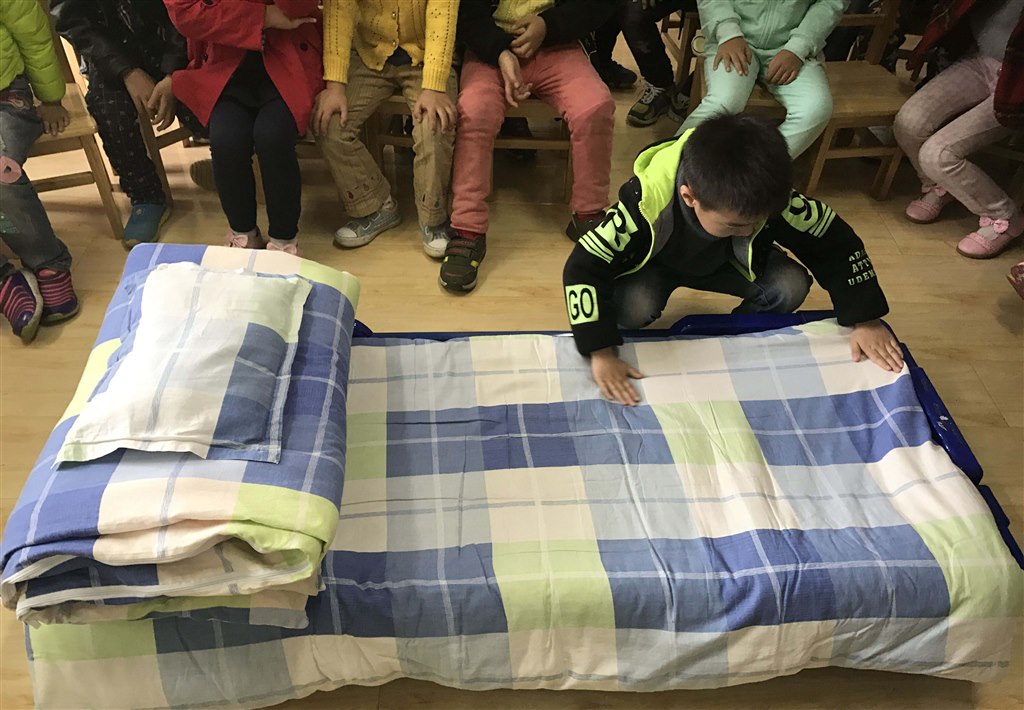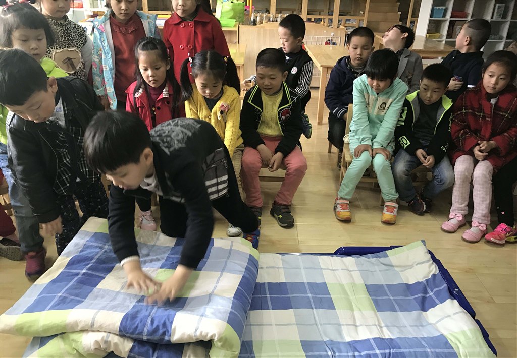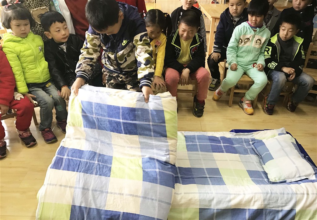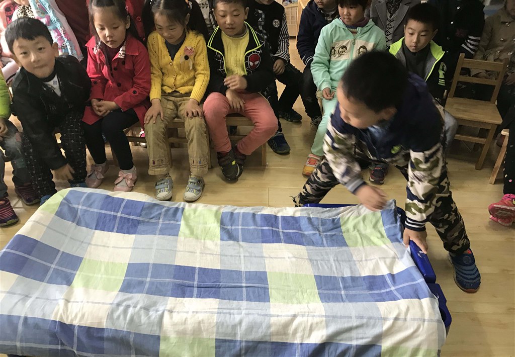 此次叠被子比赛活动,使幼儿的生活自理能力和动手能力得到锻炼,让幼儿在生活中得以学习,在锻炼中快乐成长,体验生活自理的乐趣。(马美婷 曹静)